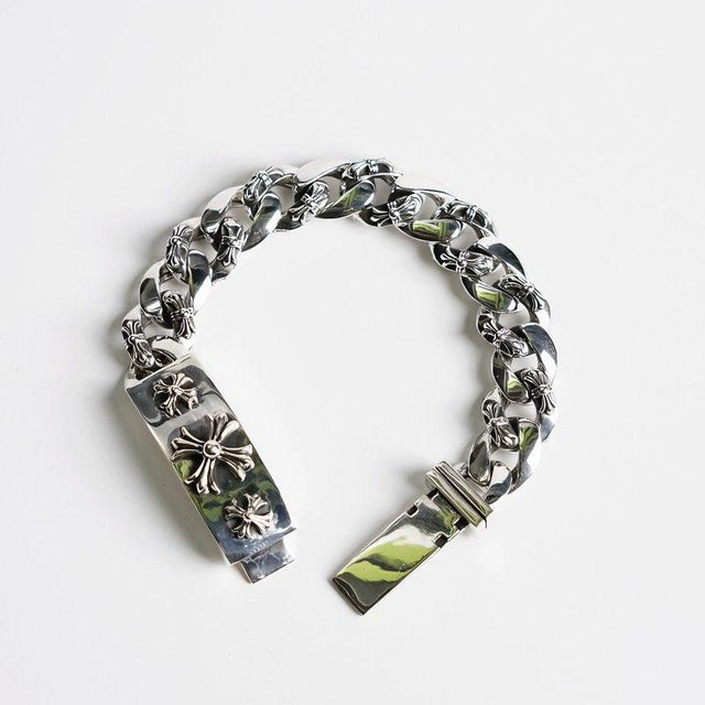 This chained bracelet enhances any outfit with its stylish design. Made of high-quality materials, it provides durability and comfort. Perfect for casual or formal occasions, it adds a touch of elegance to your look. Crafted with a unique chained style, it is a must-have accessory for any fashion-forward individual.