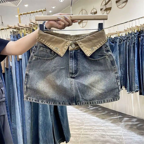 Brown PU Leather Pleated Mini Skirt with Heart-Buckle Belt