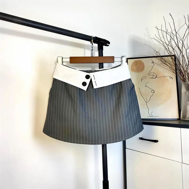 Pinstripes collar mini skirt