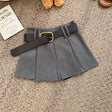 This formal mini skirt features a unique pinstriped design and a flattering collar, making it a versatile addition to any wardrobe. Crafted with high-quality materials, this skirt offers both style and durability. Perfect for a professional setting or a night out.