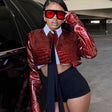 Crafted leather, our Cropped Zip Jacket is the perfect blend of style and functionality. With its cropped design, you'll be able to show off your figure while staying warm and protected. Elevate any outfit with this must-have addition to your wardrobe.