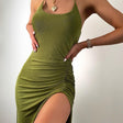 This lime green slit dress is perfect for making a stylish statement at any occasion. With its vibrant color and alluring slit detail, you'll stand out in the crowd and feel confident in your fashion choice. Made with high-quality material, this dress is both beautiful and comfortable.