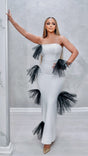 This stunning Tulle-Accented Mermaid Gown exudes elegance and sophistication. The delicate tulle accents add a touch of whimsy to the classic mermaid silhouette. Perfect for special occasions, this gown is sure to turn heads and make you feel like a true fashion expert.