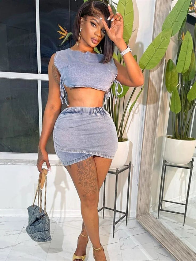 Introducing the Denim Vibe Set - the ultimate in chic denim luxury. This set is crafted with high-quality denim for a sophisticated, yet comfortable look. Perfect for any occasion, this set exudes a sense of effortless elegance. Elevate your style with the Denim Vibe Set.