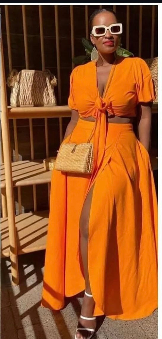 Slit your style game with this Side Slit Skirt Set! The perfect addition to your wardrobe, this set adds a playful touch with its side slits. Show off your legs and personality with this quirky and fun outfit. (Skirt and top included.)