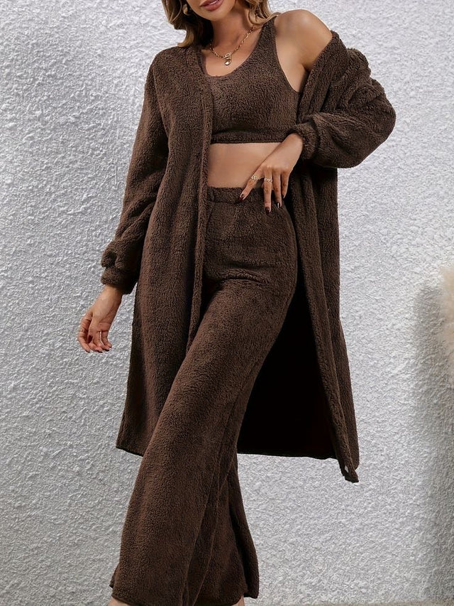 Three-Piece Cozy Brown Loungewear Set - S / Brown is backordered and will ship as soon as it is back in stock.