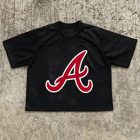 Black A print Baseball T-shirt
