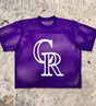 Purple CR print Baseball T-shirt - Medium is backordered and will ship as soon as it is back in stock.