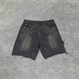 Black rhinestone-studded denim shorts. - Medium is backordered and will ship as soon as it is back in stock.