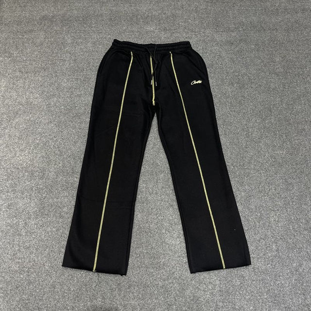 Keep it sleek and versatile with these Black Contrast Stitch Track Pants, designed for both streetwear fits and everyday comfort. Featuring bold vertical contrast stitching for a modern edge, a relaxed wide-leg cut, and an elastic drawstring waist, these pants strike the perfect balance between athletic vibes and street-ready fashion.