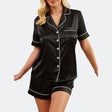 Black plain satin pj set - Medium is backordered and will ship as soon as it is back in stock.