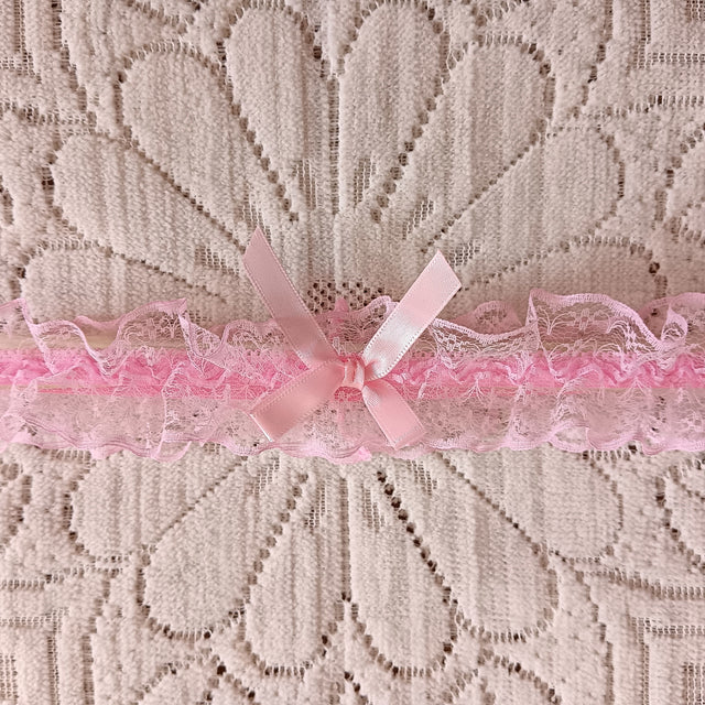 Dusty pink tie garter is backordered and will ship as soon as it is back in stock.