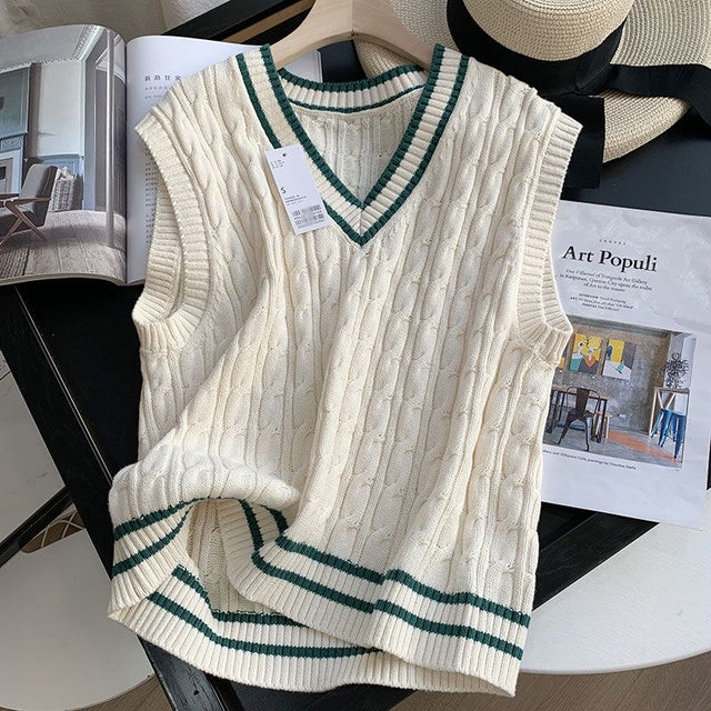 Its V-neck design exudes a classic college style that is both timeless and versatile. Elevate your wardrobe with this stylish vest and add a touch of sophistication to any outfit.