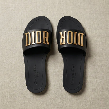 DIOR Gold Logo Leather Slide Sandals