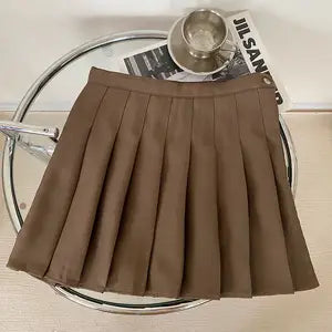 Brown PU Leather Pleated Mini Skirt with Heart-Buckle Belt