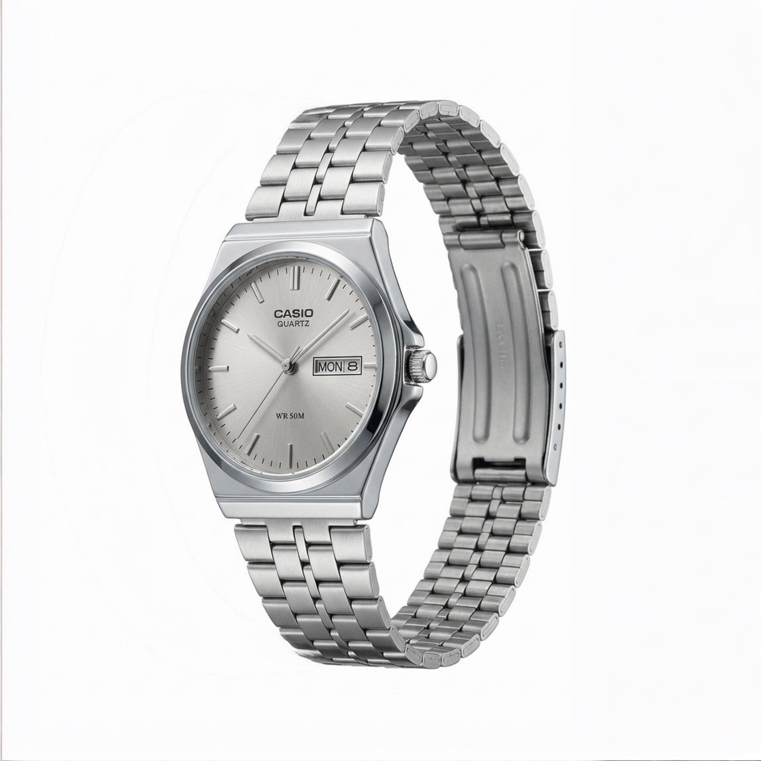 Silver circular Casio watch is backordered and will ship as soon as it is back in stock.