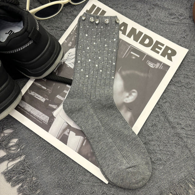 Rhinestone Crew Socks - Grey / One size is backordered and will ship as soon as it is back in stock.