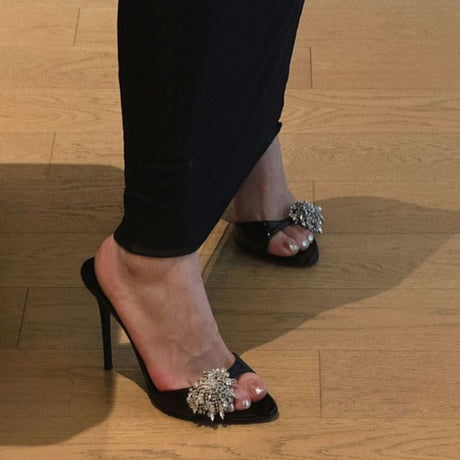 All Black CHANEL Pearl-Embellished Slide Sandals