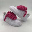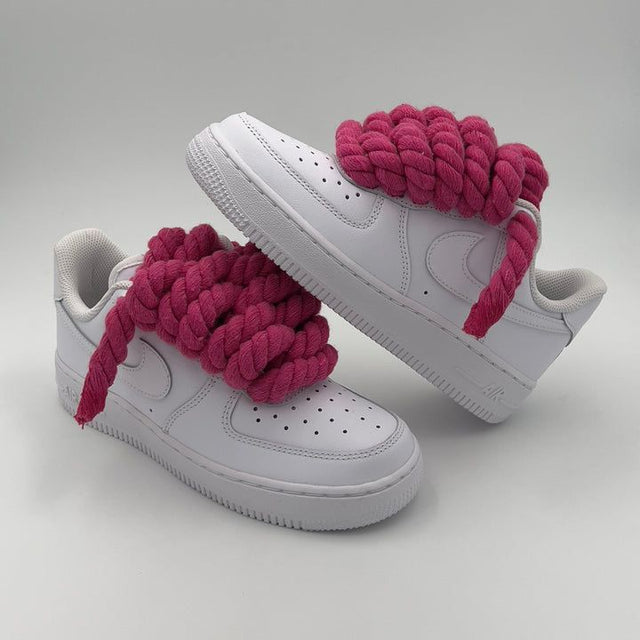 Elevate your sneaker game with the Nike AirForce featuring bold pink laces. With the iconic Nike logo, these sneakers bring both style and function to your wardrobe. Step out in confidence and comfort, making a statement that stands out from the rest. Upgrade to luxury footwear today.