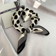 Wrap yourself in luxury with our Elegant Black and White Silk Scarf. Made from premium silk, this scarf exudes sophistication and elegance. Elevate any outfit with its timeless black and white design. Perfect for any occasion, this scarf is a must-have for the fashion-forward individual.